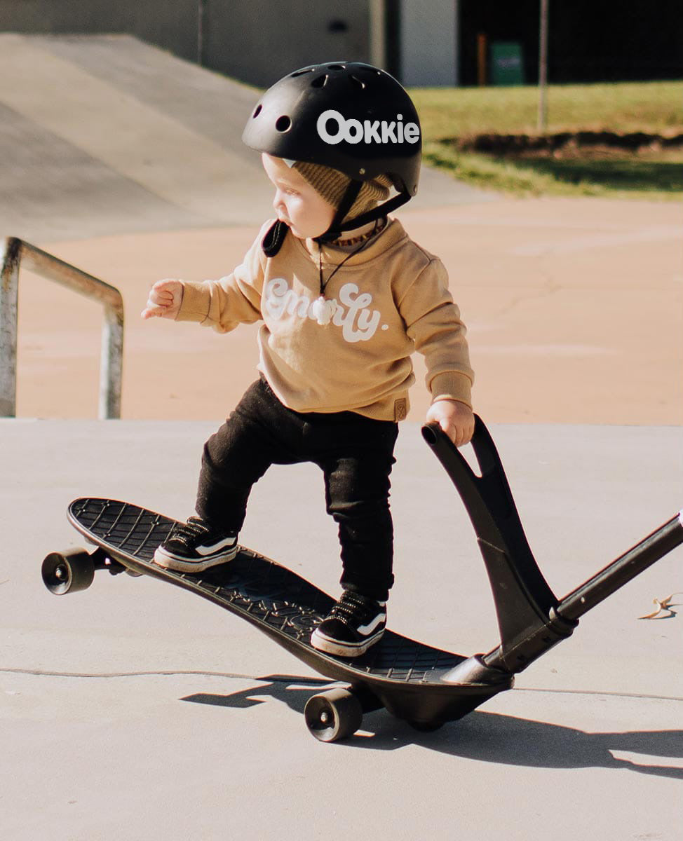 Founded in 2016 by Aussie Dad, Daniel De Gaye, the Ookkie Skateboard was created with one goal in mind - to get children learning to skateboard earlier. As a skateboarder himself, Daniel wanted to teach his son how to ride a board safely whilst also developing fundamental balance, stability and confidence.