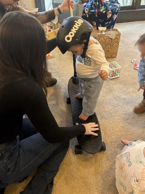 We got the Ookkie for Haydn (2.5yrs old) to learn balance, to bring some fun to our normal walks, so he felt like his siblings on their skateboards. Ookkie is fun for the whole family, each of his older siblings love having their turn to push him on it, it makes our walks more fun and makes him feel so special!